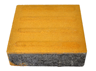 黄色盲道砖,盲道砖规格尺寸:200*200*60 盲道砖规格颜色:黄色 盲道是专门帮助盲人行走的道路设施。盲道一般由两类砖铺就,一类是条形引导砖,引导盲人放心前行,称为行进盲道。